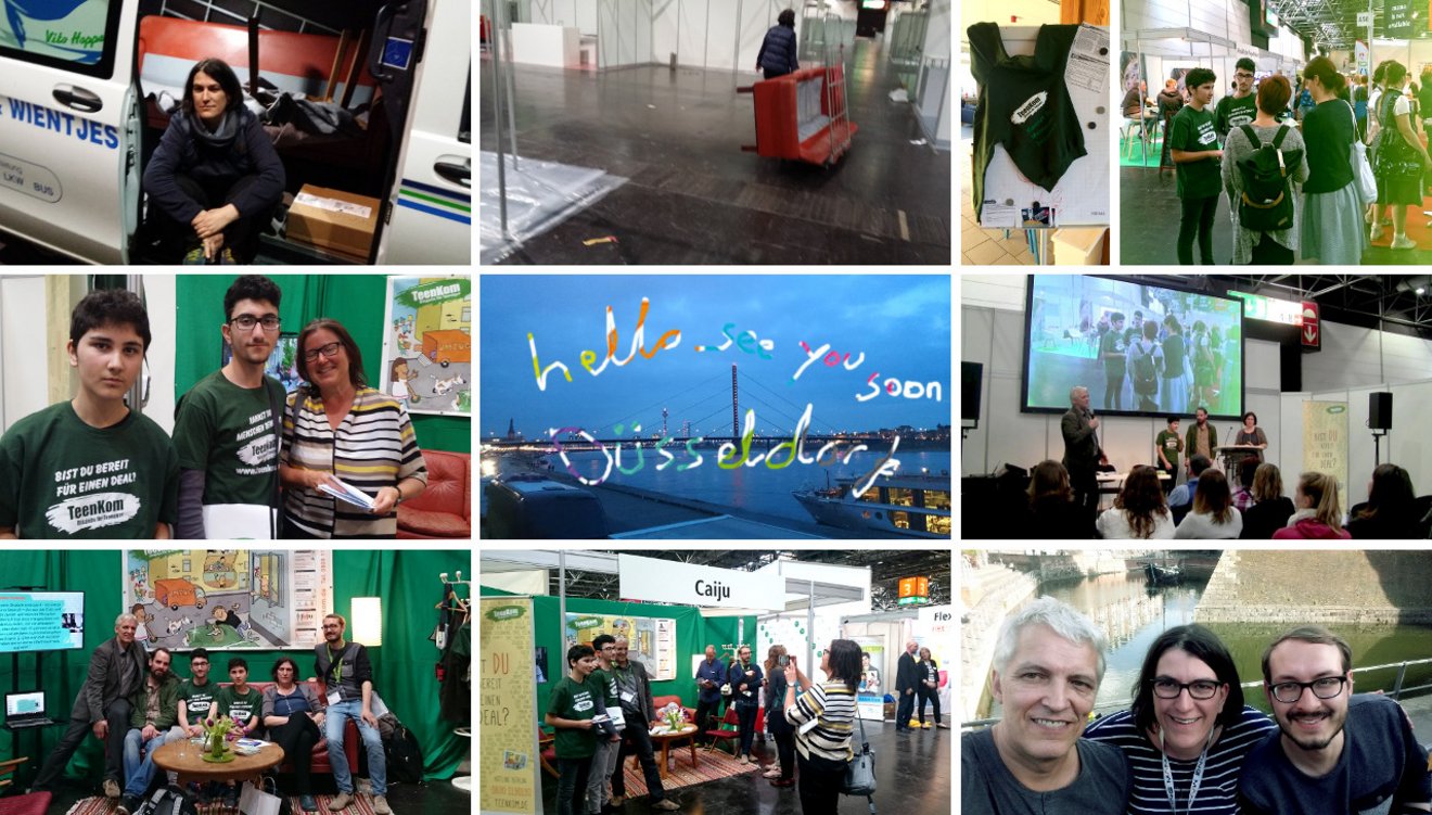 v.o.links: Nadine pausiert nach Ankunft aus Berlin, bevor unser rotes Sofa eingerollt wird. Zu unseren Gästen am Stand gehörten auch Bekannte aus Berlin wie Elvira Kriebel vom Paritätischen, die unsere neuen Blitzjobbees kennen lernte (Mitte links). Die Messetage brachten uns über 30 neue Bekanntschaften von verschiedenen Kommunen, Verbänden und Trägern, die sich in unterschiedlicher Art Blitzjobs als Modul zur Verbesserung der Reichweite und Handlungsmöglichkeiten der Jugendarbeit vorstellen können. Am Ende, vor der Rückfahrt nach Berlin: erfüllt und gespannt auf die nächsten Schritten beim Transfer von Blitzjobs, konnte Caijus Team (Per Traasdahl, Nadine Kurz und Timo Schuster) die Frühlingssonne genießen.